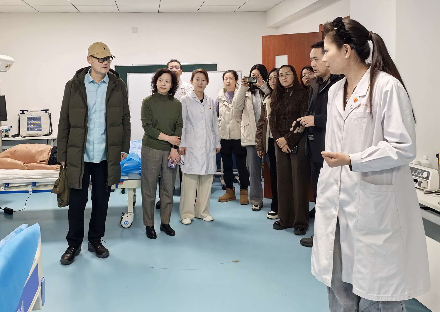 活动中,中心工作人员系统介绍了整体布局、功能分区及“模拟实训-技能考核-能力提升”全链条服务模式。各负责人先后参观模拟病房、微创手术模拟培训中心等区域,近距离观摩综合模拟人、CTA临床思维训练系统等设备的操作演示,详细了解设备在基础技能强化、专科能力培养中的应用场景与价值,就培训承载量、课程适配性等问题进行了交流。