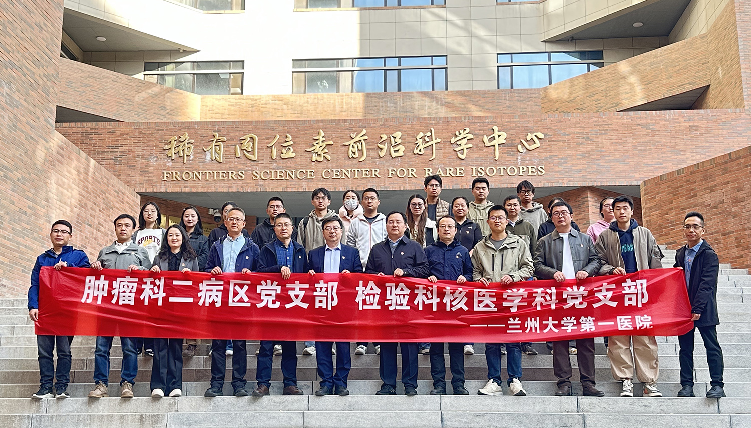 10月24日,兰州大学第一医院肿瘤科二病区党支部、检验科核医学科党支部在兰州大学稀有同位素前沿科学中心,与兰州大学核科学与技术学院核技术与辐射防护教工党支部、研究生党支部,稀有同位素前沿科学中心党支部,及兰州大学化学化工学院有机化学教工党支部开展党建结对共建活动。