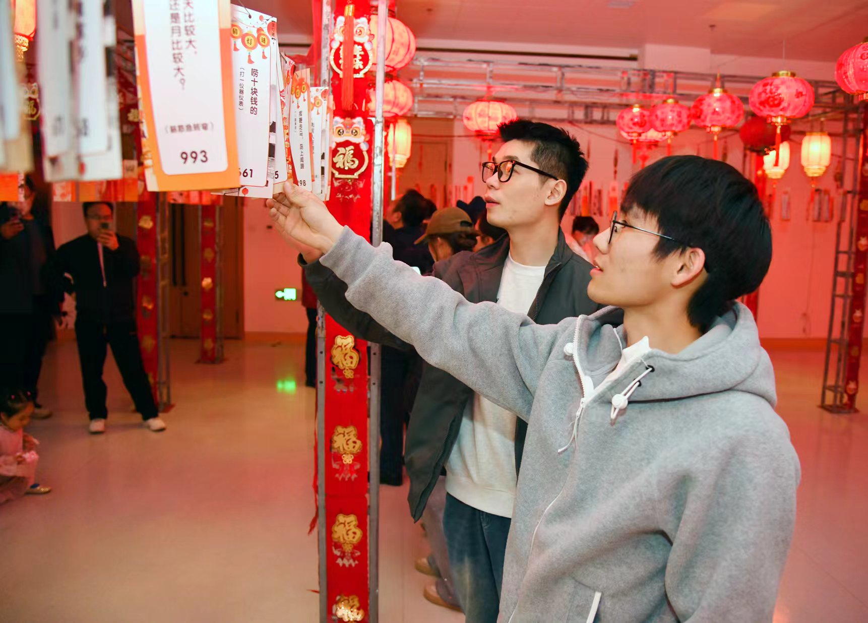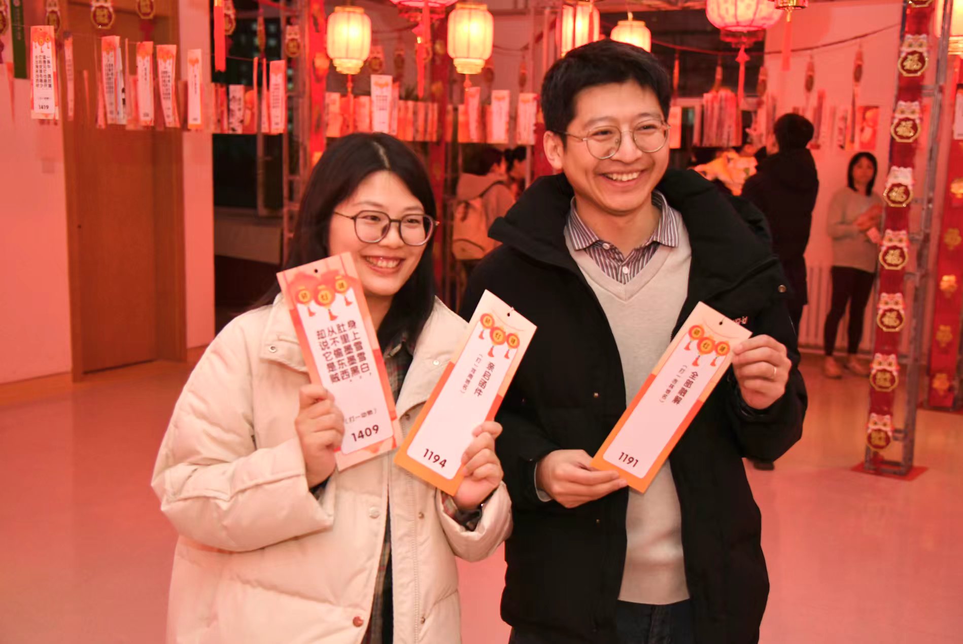 活动期间,前来参与的职工络绎不绝。大家纷纷结伴而来,在灯谜前或驻足凝思,或热烈讨论,相互启发。有的科室组团“作战”集体攻关;有的职工带着家人、孩子一同前来,共享亲子猜谜之乐。每当有人猜中谜底,便喜笑颜开地前往兑奖处领取工会准备的伴手礼,现场欢声笑语不断。
