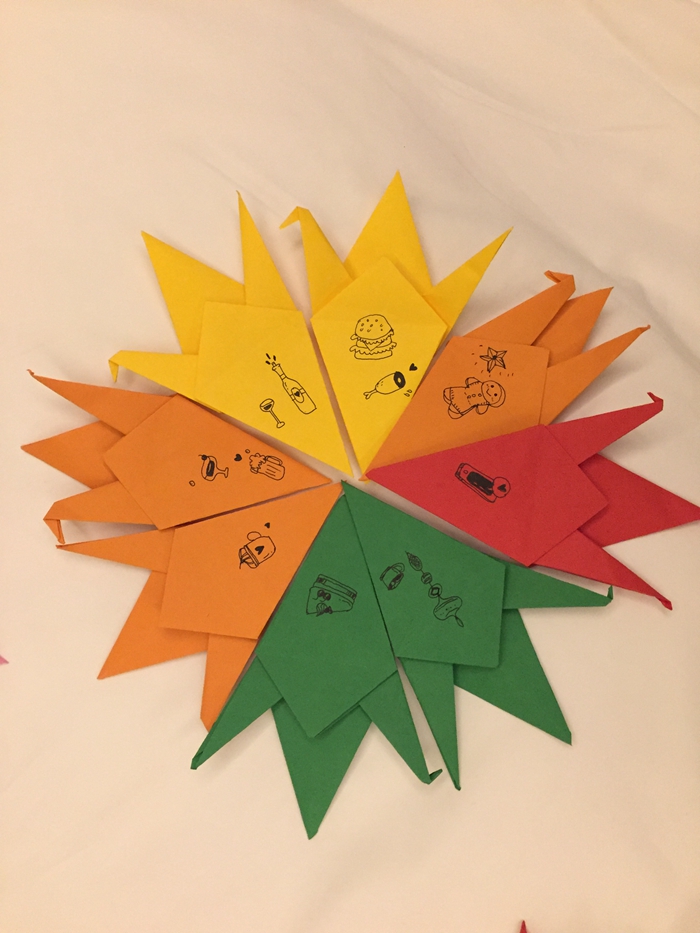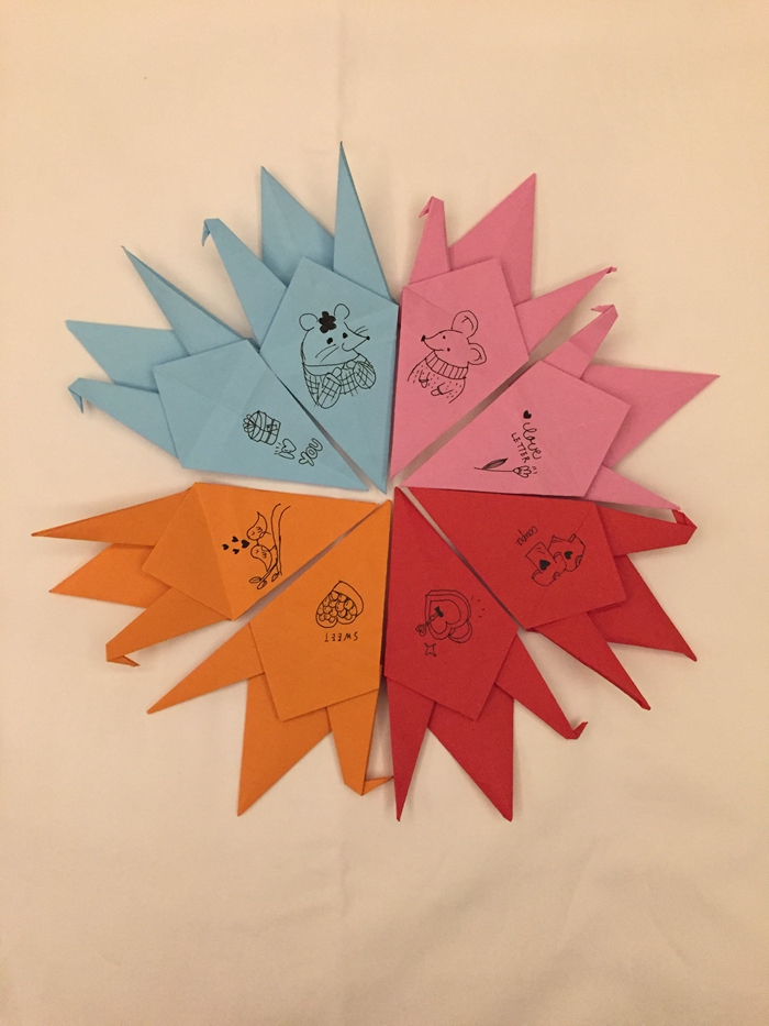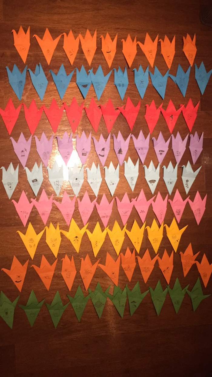 医疗队员利用坐车的间隙和休息时间为患者折的千纸鹤