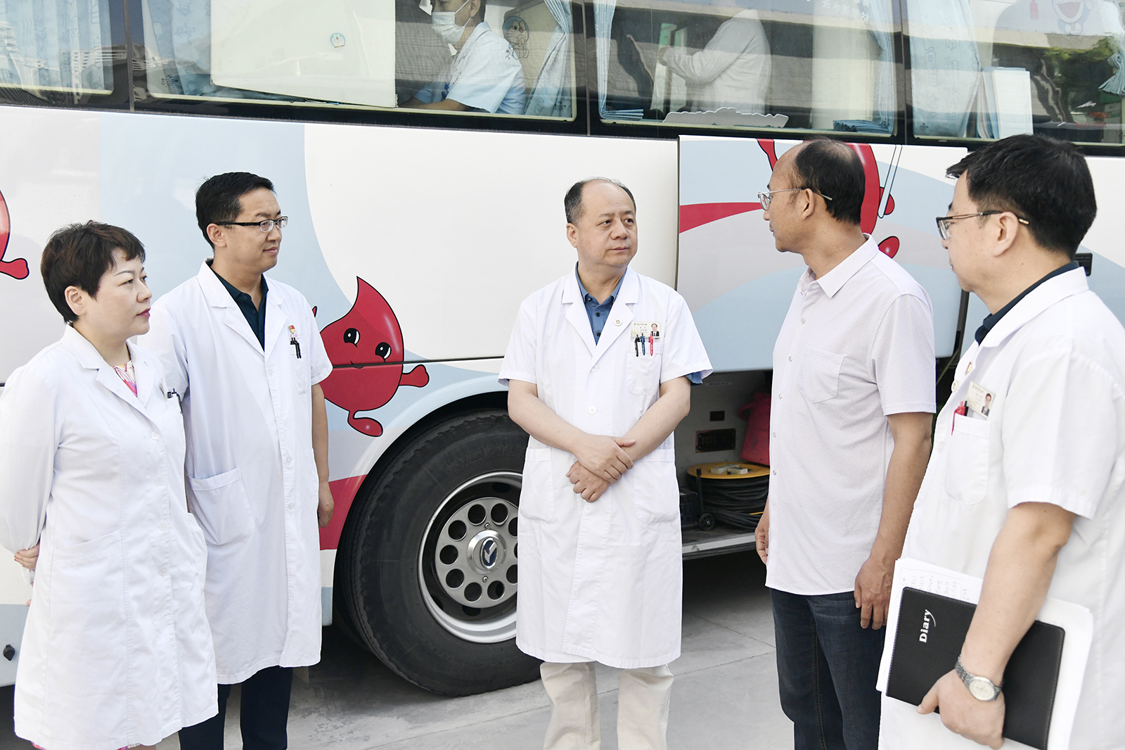 上午8点半,活动在兰大一院英福楼前顺利举行,兰大一院院长李汛,院长办公室、医务处、护理部等部门相关负责人参加活动并看望了献血职工。