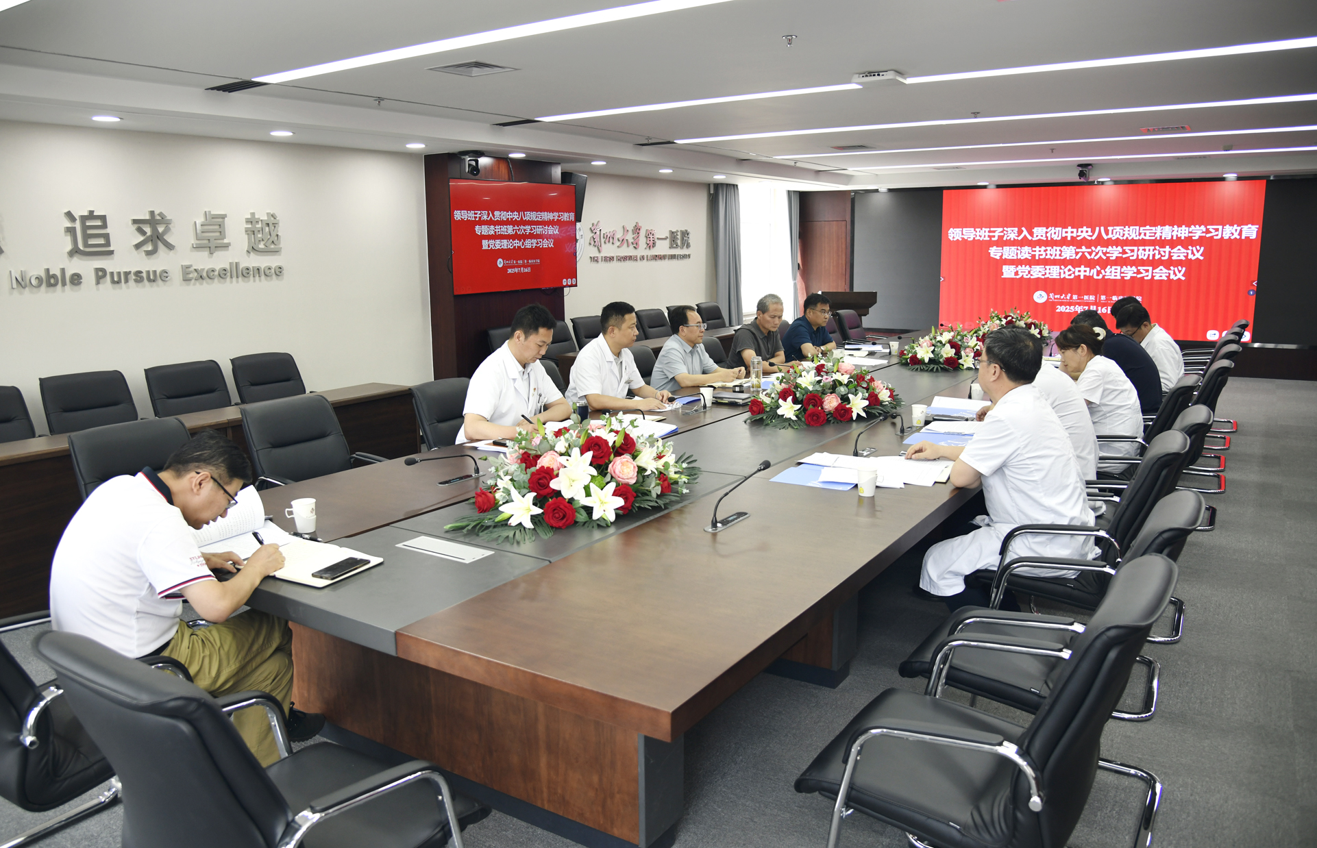 7月16日,兰州大学第一医院(第一临床医学院)组织召开领导班子深入贯彻中央八项规定精神学习教育专题读书班第六次学习研讨暨党委理论学习中心组专题学习(扩大)会议。