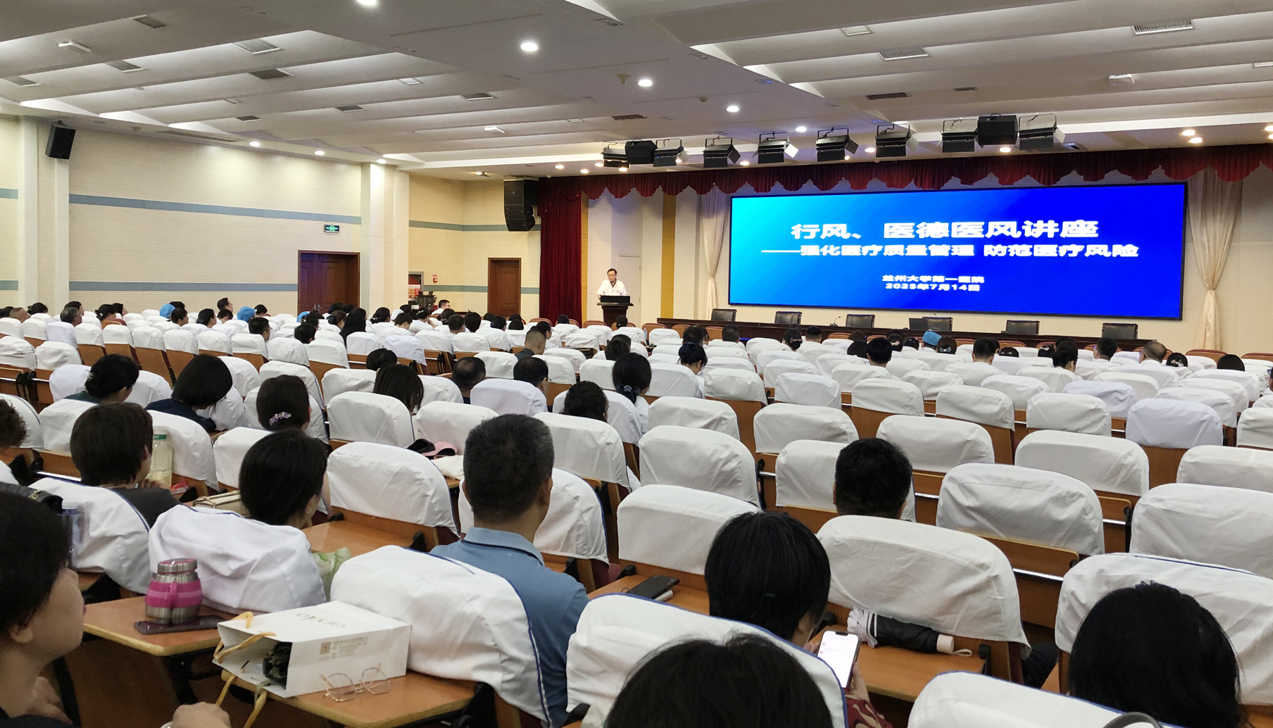 7月14日,兰大一院在营养楼第一学术厅举办行风、医德医风建设讲座,甘肃省卫生健康监督保障中心医疗服务监管科科长于娟应邀授课。