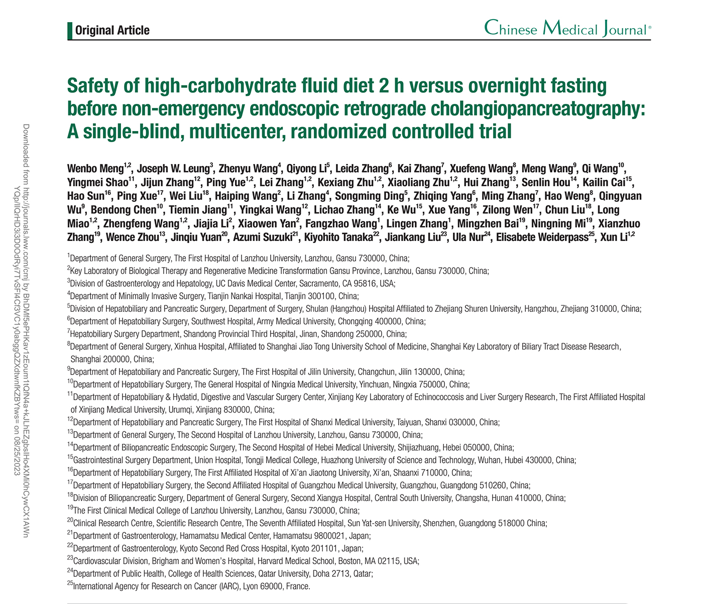 兰大一院院长李汛教授牵头的全国外科ERCP多中心研究在内镜领域拓展ERAS理念获新突破