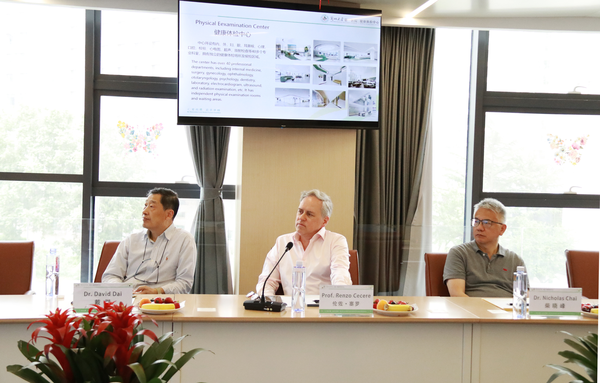 On the afternoon of May 24, Dr. David Dai, the Secretary General of the Bethune Medical Development Association of Canada, Prof. Renzo Cecere and Prof. Nicholas Chai visited the Health Examination Center of LZUFH, accompanied by Liu Yatao, the Director of Foreign Affairs Office of LZUFH.