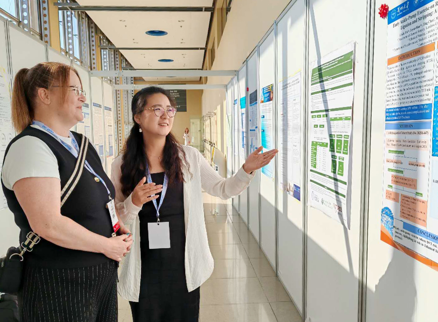 At the poster sessions, Kang Ju, Chief Rehabilitation Therapist of the Department of Rehabilitation Medicine, presented on the impact of interferential current therapy combined with the traditional Chinese exercise "Baduanjin" on pain, function, and balance ability in patients after lumbar spine surgery, vividly illustrating the features of integrated Chinese and Western medicine rehabilitation and attracting numerous representatives for discussion. Yu Liulin, Head Nurse of the 10th Ward, Department of General Surgery, reported on the positive effects of early ankle pump exercises on rehabilitation after lower limb venous surgery; this work was awarded the "Best Poster" prize. Wang Mingfei, Associate Chief Physician of the 2nd Ward, Department of General Surgery, shared findings on the impact of ERAS protocols on the postoperative complication rate following laparoscopic pancreaticoduodenectomy. Additionally, five postgraduate students from the First School of Clinical Medicine also conducted academic exchanges at the congress.