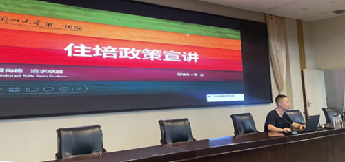 兰大一院规培办副主任 李立 进行政策宣讲,在院优秀规培生代表:2022级规培生陈煜昇,2021级规培生李国江 分享规培经验