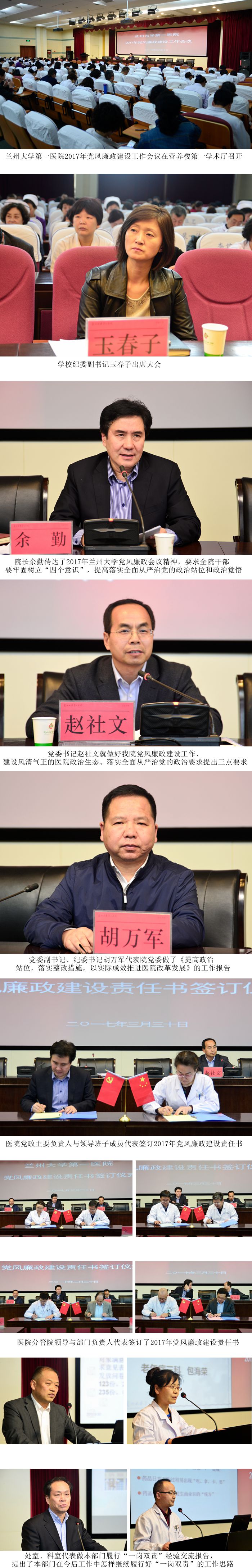 大会最后,医院党政主要负责人与领导班子成员代表、分管院领导与部门负责人代表签订了2017年党风廉政建设责任书。