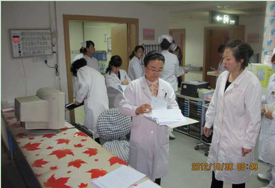 10月30日上午8时,按照刘晓菊副院长统一部署安排,医务处处长王建民,医务处副处长、医疗安全管理办公室主任文新忠,设备处处长杨伟林,急诊科主任褚沛,护理部副主任白艳,医务科科长毛亦佳,医疗质量监控科科长周荣,医疗质量监控科副科长杨秋竹,感染管理、公共卫生科科长金凤玲、副科长脱运军,保健科科长张杰生,医疗安全管理办公室副主任王永军、护理部干事陈瑞睿等同志准时集合,分为三个检查小组,分别检查了妇产科、普外一科、儿科、心内科、血库、放射科、病理科等科室,检查内容主要围绕等级医院评审标准和医疗核心制度展开。当日上午11:30分,刘院长组织检查工作反馈会议,认真听取了各检查小组的反馈结果,发现临床科室的问题主要集中反应在病历书写的及时性、规范性不够,临床路径的开展有待优化,工作人员的安全意识欠缺,值班人员的责任意识有待提高;医技辅助科室的问题主要集中在相关规章制度陈旧老化,不能适应目前我院的发展节奏;全院范围内普遍存在的问题为感染管理还没有达到应有的重视程度。刘院长表示,我院医疗护理工作整体运行良好,各科室能够遵守医院相关规章制度,落实医疗核心制度,坚守医疗行为规范的准则,确保了医疗质量和安全,但是仍有一些科室存在着不同程度的问题,行政职能部门的检查不能停留在形式上,要深入务实地接触临床,各部门要相互协作,积极去做事,相互取长补短,要重视加强科室的内涵建设,针对检查中存在的问题,各科室、各部门一定要严肃对待,限期整改,要求各科室要采取行之有效的管理措施,避免出现监管不严、行事松散的工作陋习,对一些反复出现的问题一定要追根溯源,找出事情的根源所在,下定决心逐步、彻底地解决,刘院长反复强调,要通过制度、教育、监督等不同的措施,让我院全体职工都能成为具有责任意识、服务意识的优秀医务人员。