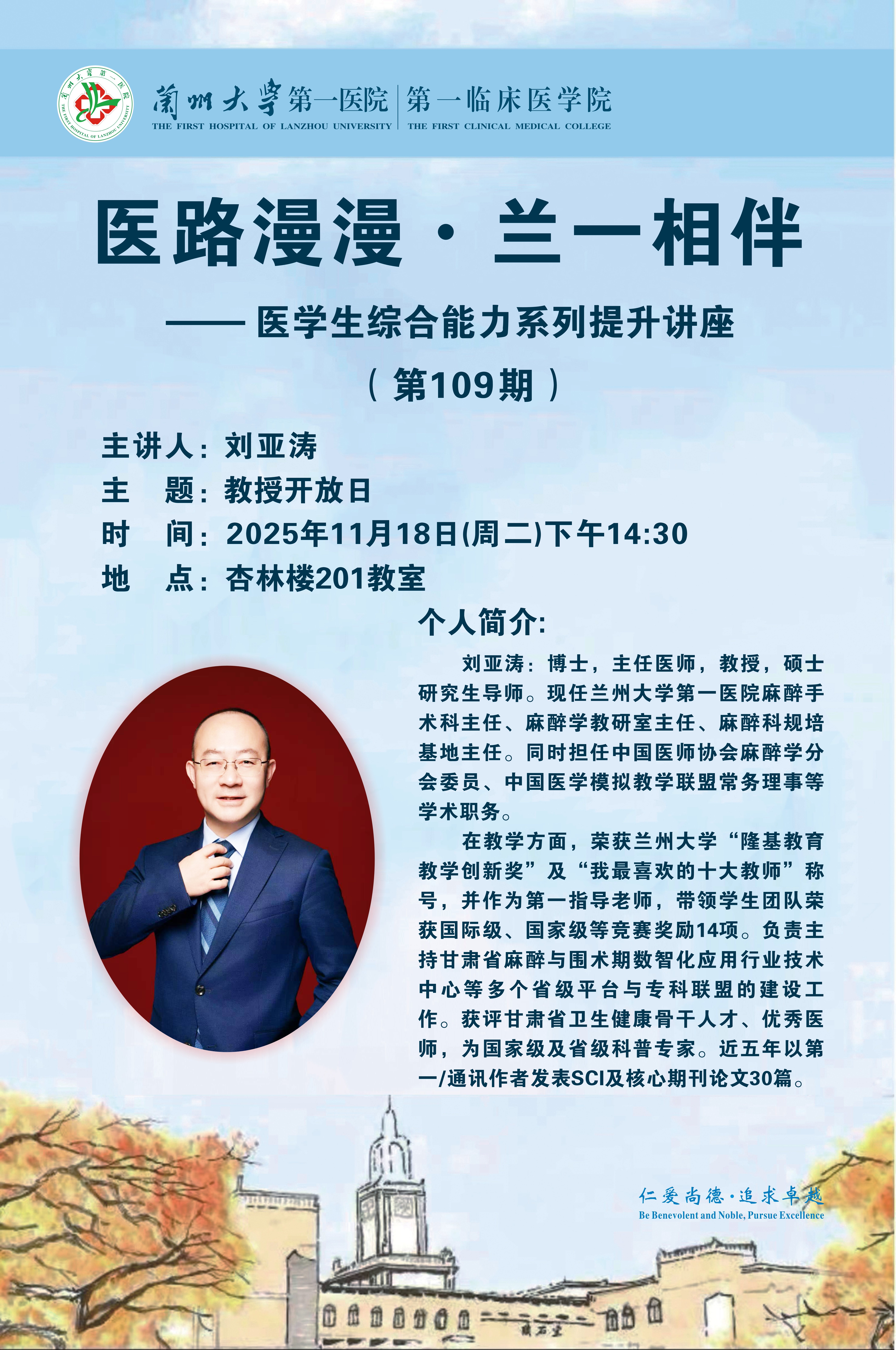 【讲座】“医路漫漫 兰一相伴”(109期) 医学生综合能力提升系列讲座