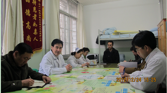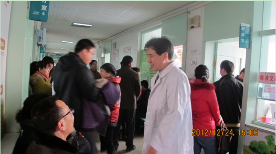 2012年12月24日——12月30日,余勤副院长作为值周院长,带领值周小组成员党委组织部部长雒富基、党委宣传部部长濮瑜、人事处处长严慧萍、院长办公室主任车世平、监察审计处处长郗朝晖、发展规划处处长滕永军、计划财务处处长巨秀梅及信息中心主任陈志雄重点检查监督了门诊、医技、行政等相关部门的工作情况。