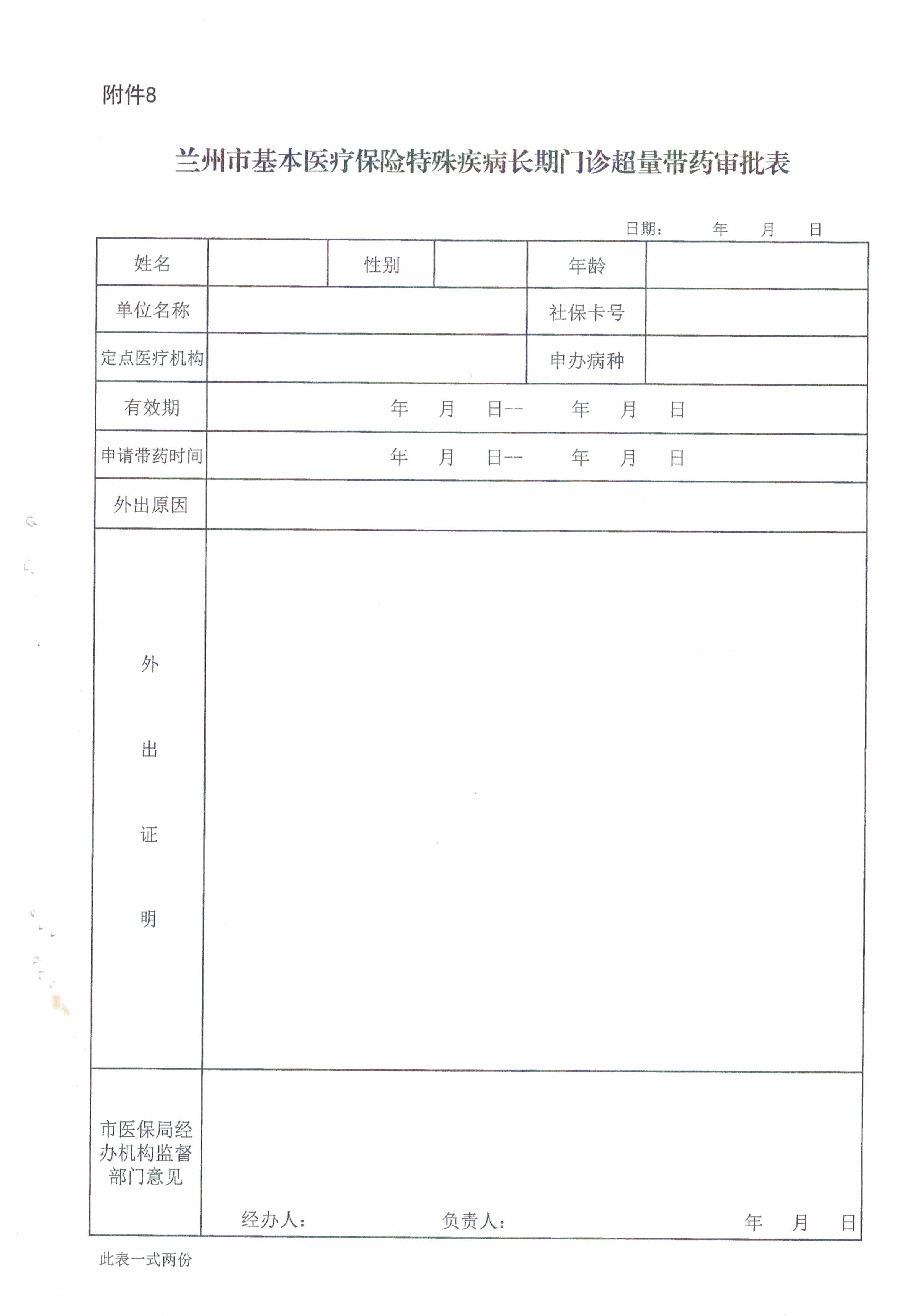 便民服务:兰州市特殊疾病长期门诊超量带药审批表