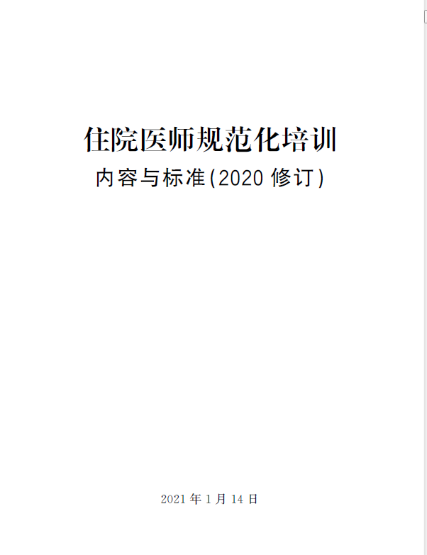 【住培】住院医师规范化培训内容与标准(2020修订)》